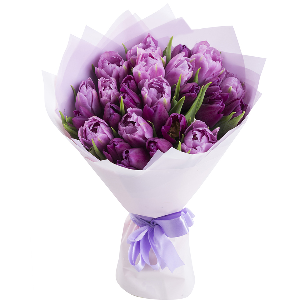 Букет из 25 сиреневых тюльпанов