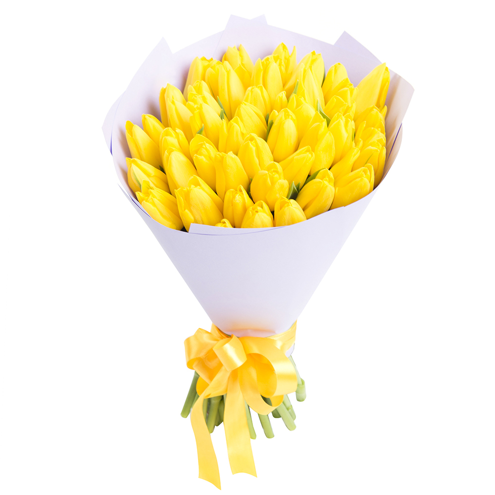 35 желтых тюльпанов