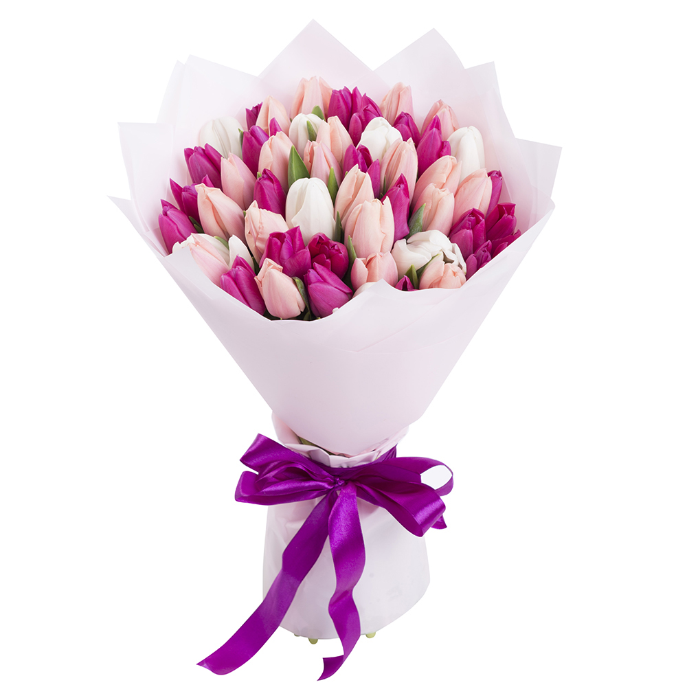 51 разноцветный тюльпан в пленке